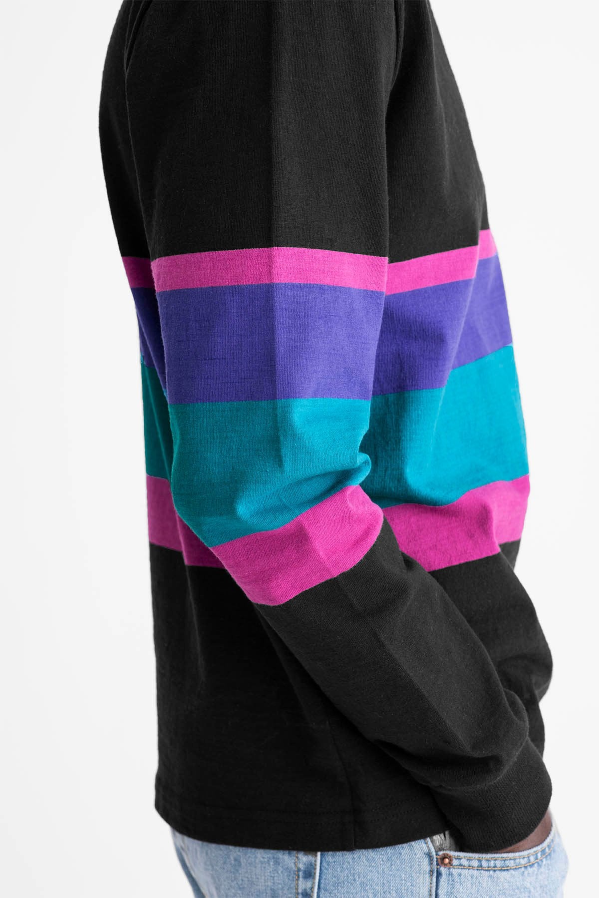 Made in Canada. 100% cotton, 8 oz Practice Cloth. Engineered stripes. Embroidered logo on lower front.