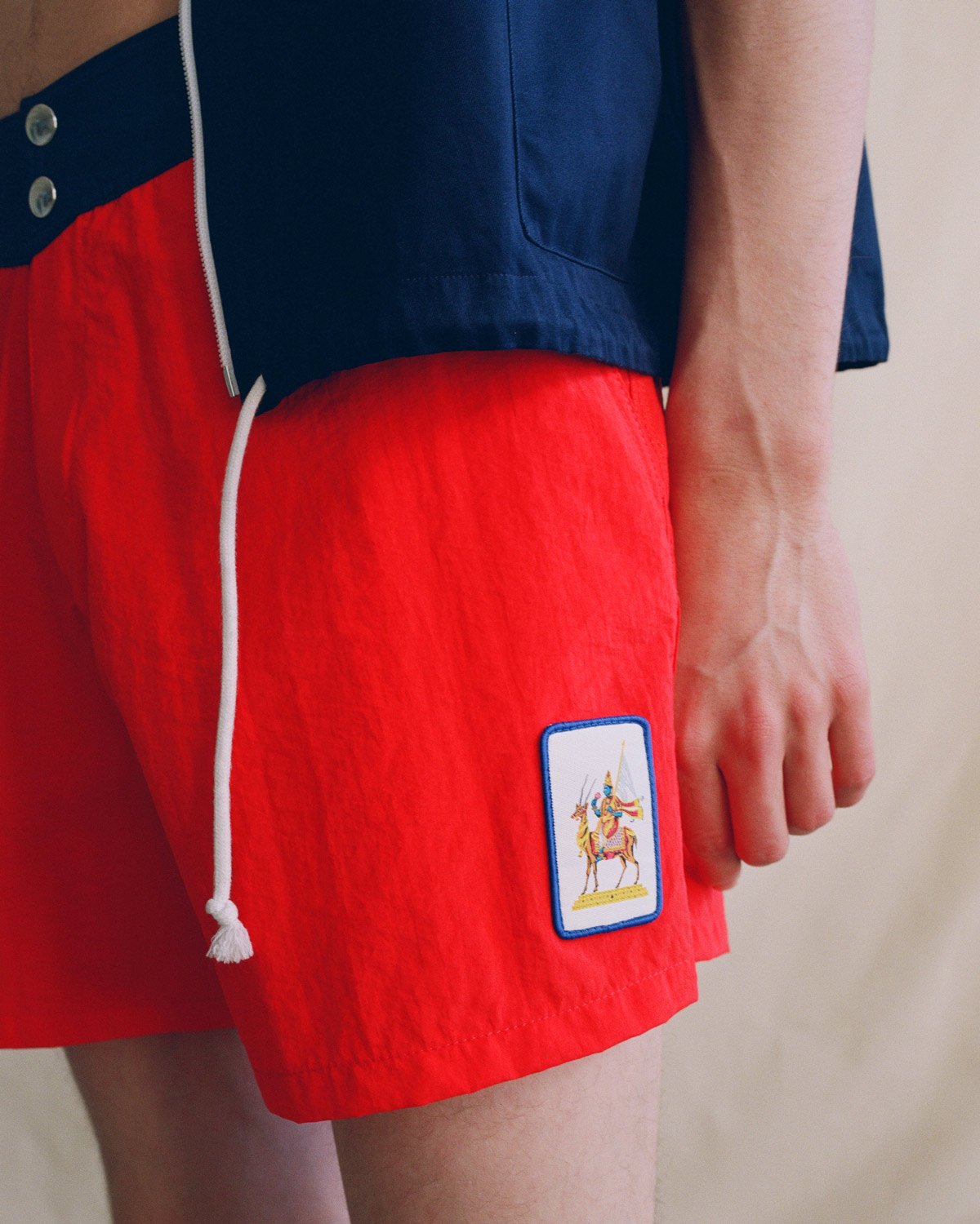 Made in Italy. 100% nylon. Double-snap closure at waistband with velcro fly. Custom Vayu label on thigh, woven label on back waistband. Front slash pockets, back patch pocket with velcro closure and metal eyelet drain vent.