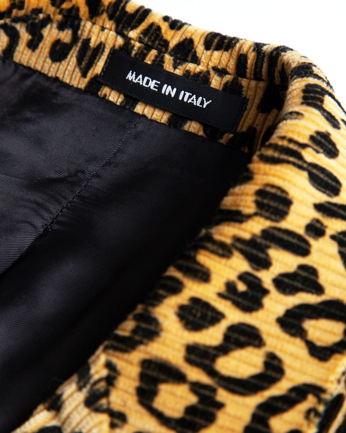 Originally developed as a more affordable alternative to velvet, corduroy combines luxury and durability like no other material. This leopard version contradicts the fabrics workwear and Ivy League past. Few patterns can be embraced by both grandmas and youth culture, and that's precisely why we love leopard.